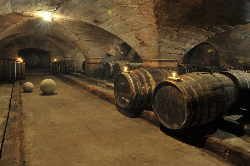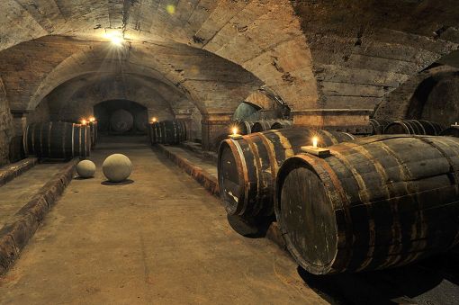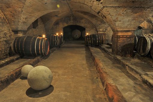 To the side of this cellar are further barrel vaults which also feature impressive pillars. Together with the glass lined concrete tanks installed post-1900 and an enormous bottle store, the complex boasted an overall storage capacity of several hundred thousand litres.