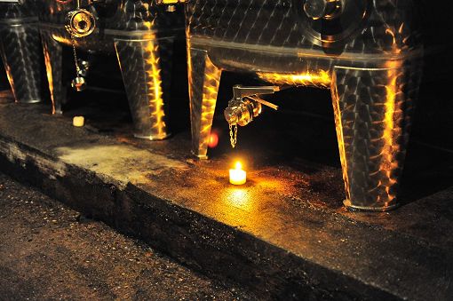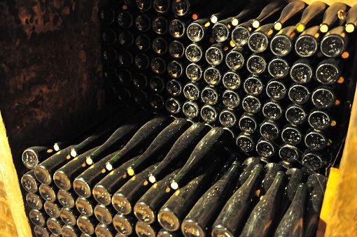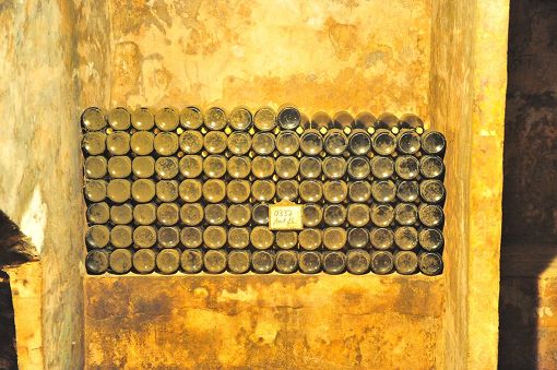 From the maturation cellars a doorway leads through to a comparatively low and small vaulted cellar beneath the company’s former headquarters. This is mainly used as a bottle store. Several decades ago an additional supporting pillar was installed to secure the vaulted ceiling. Here it’s easy to appreciate the difficult working conditions of former times.