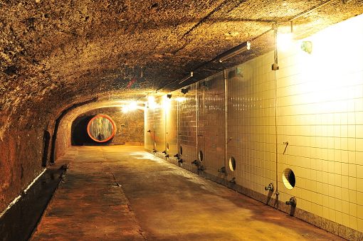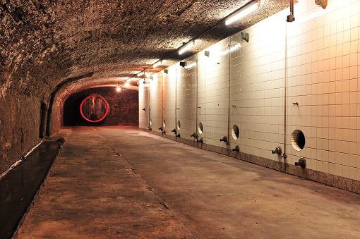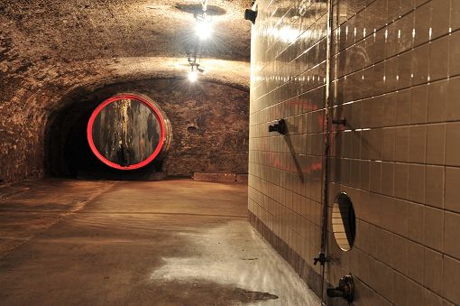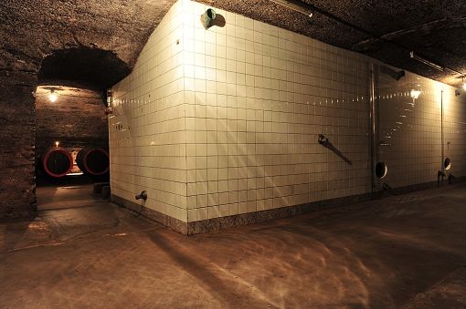 Bereits vor dem 1. Weltkrieg wurden zur Erhöhung der Lagerkapazität mit Glasfliesen ausgekleidete Betontanks eingebaut. Ein Vorkeller führ Gerätschaften führt in den dahinterliegenden gedoppelten Gewölbekeller.