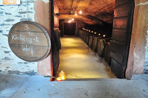 Monks founded the church winery up on the Göckelsberg above Wolf back in 1478. Ten years later work began on the church cellars, designed to take 24 tun casks. The cellar is in the shape of an elongated barrel vault which mirrors the floor plan of the church above. A chapel to St. Servatius built on top of the cellar was dedicated in 1491.