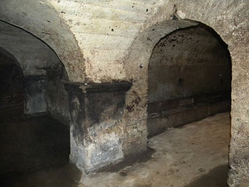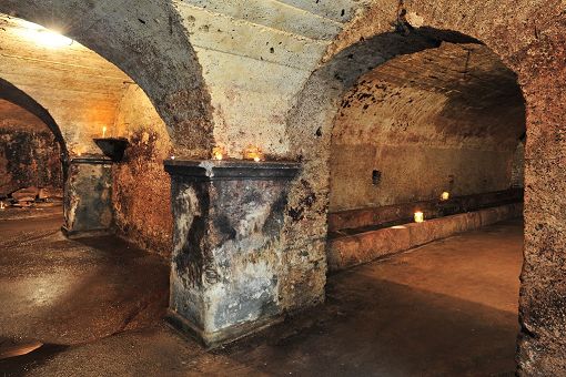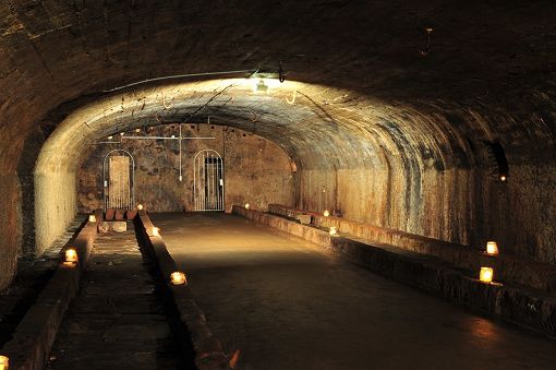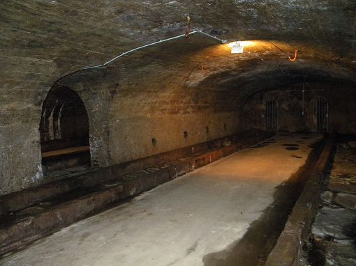 An interesting wine cellar can be seen at the intersection of Obere Kaiserstraße and Bismarckstraße beneath the building commonly referred to as the 'Flüchtlingshaus'. Until after the First World War, this house was used as business premises - including storage rooms and a production area - by the Adolph Huesgen company.