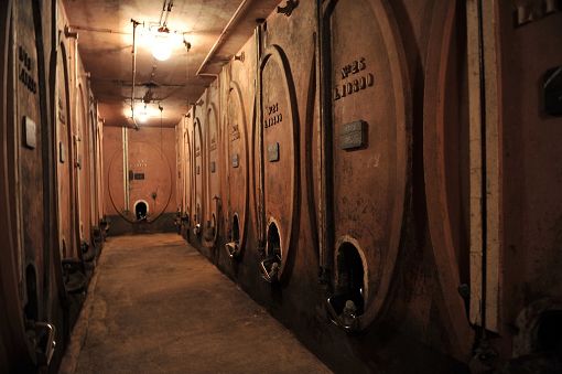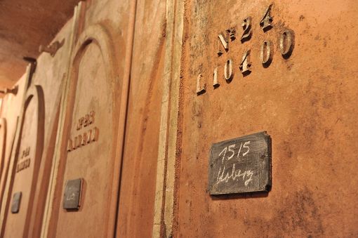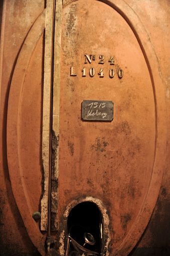 Auf dem Foto wird der 1911 entstandene Neubau gezeigt, der aus 31 Zementglasfässern mit einem Fassungsvermögen von rund 260 Fudern besteht.